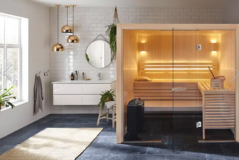- Choisir des matériaux adaptés : privilégiez un bois résistant à la chaleur pour le sauna (comme le cèdre ou l’épicéa), un verre de sécurité et un carrelage étanche pour le hammam.